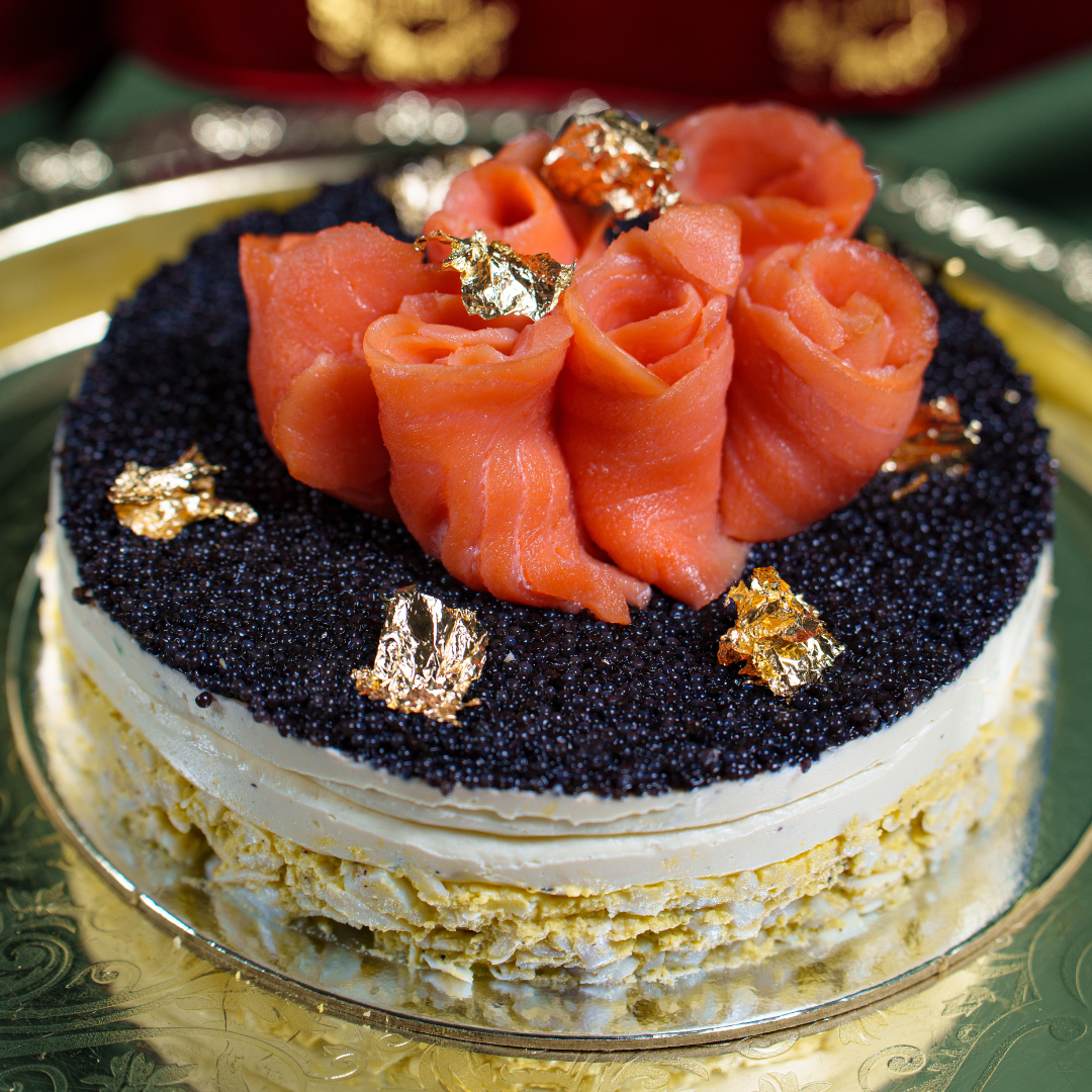 Indulge in creamy layers of truffle egg, cream cheese, black roe caviar, and smoked salmon — paired with crisp crackers for that one glorious bite. 😋