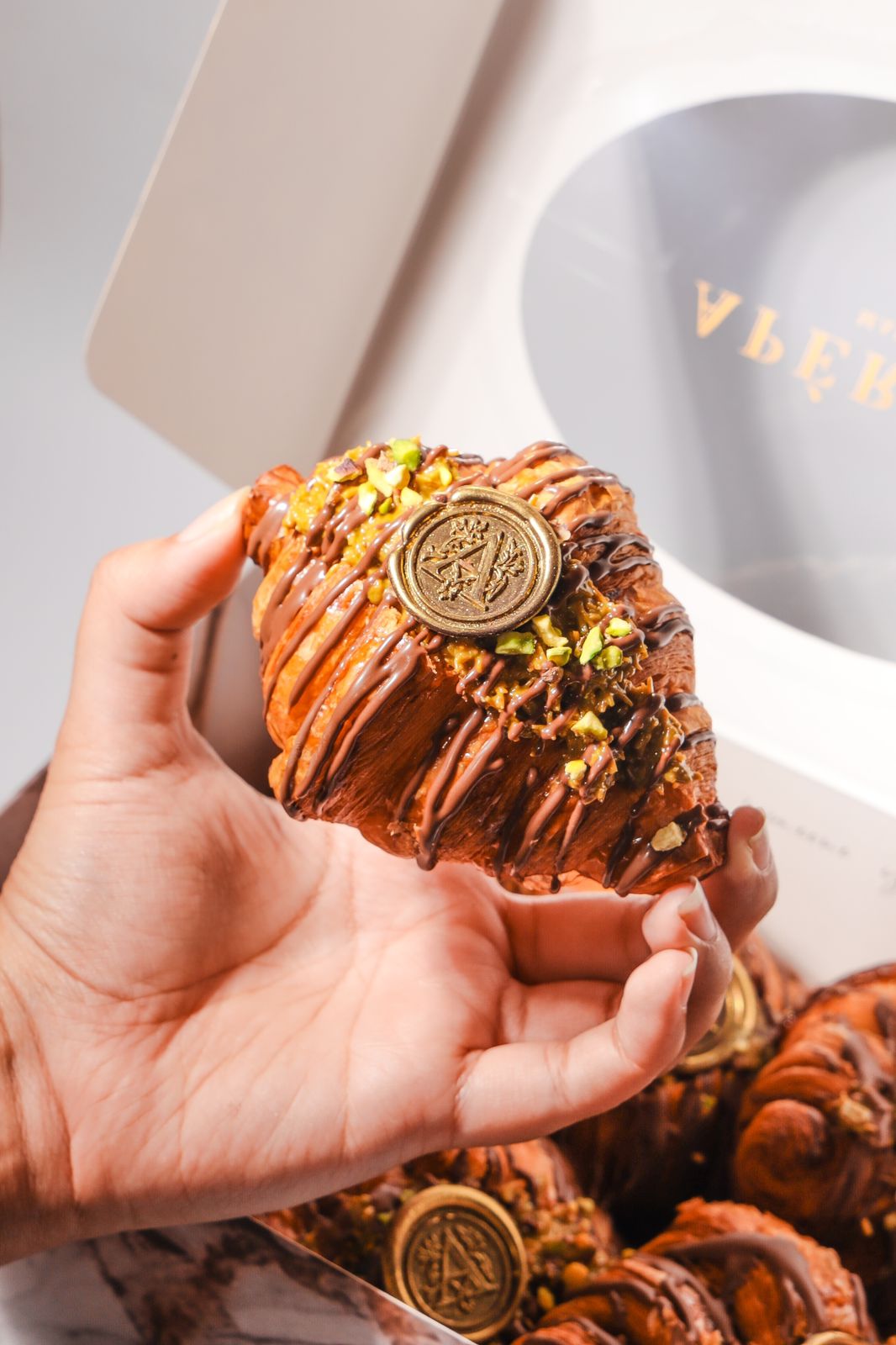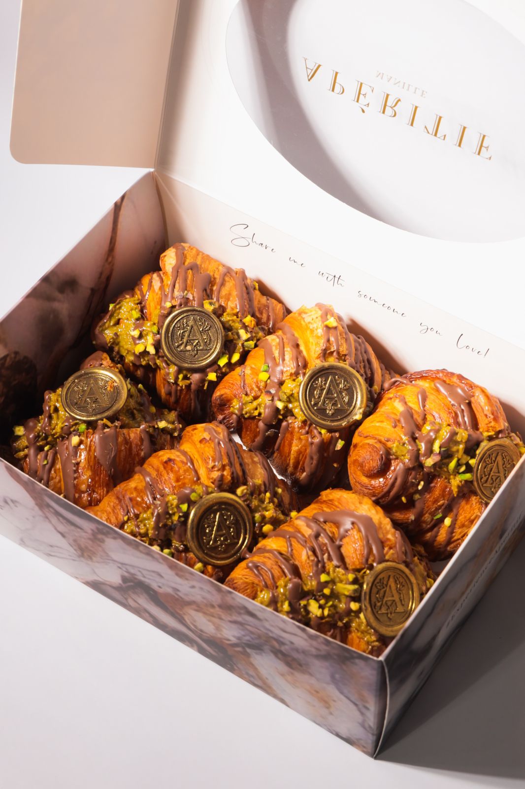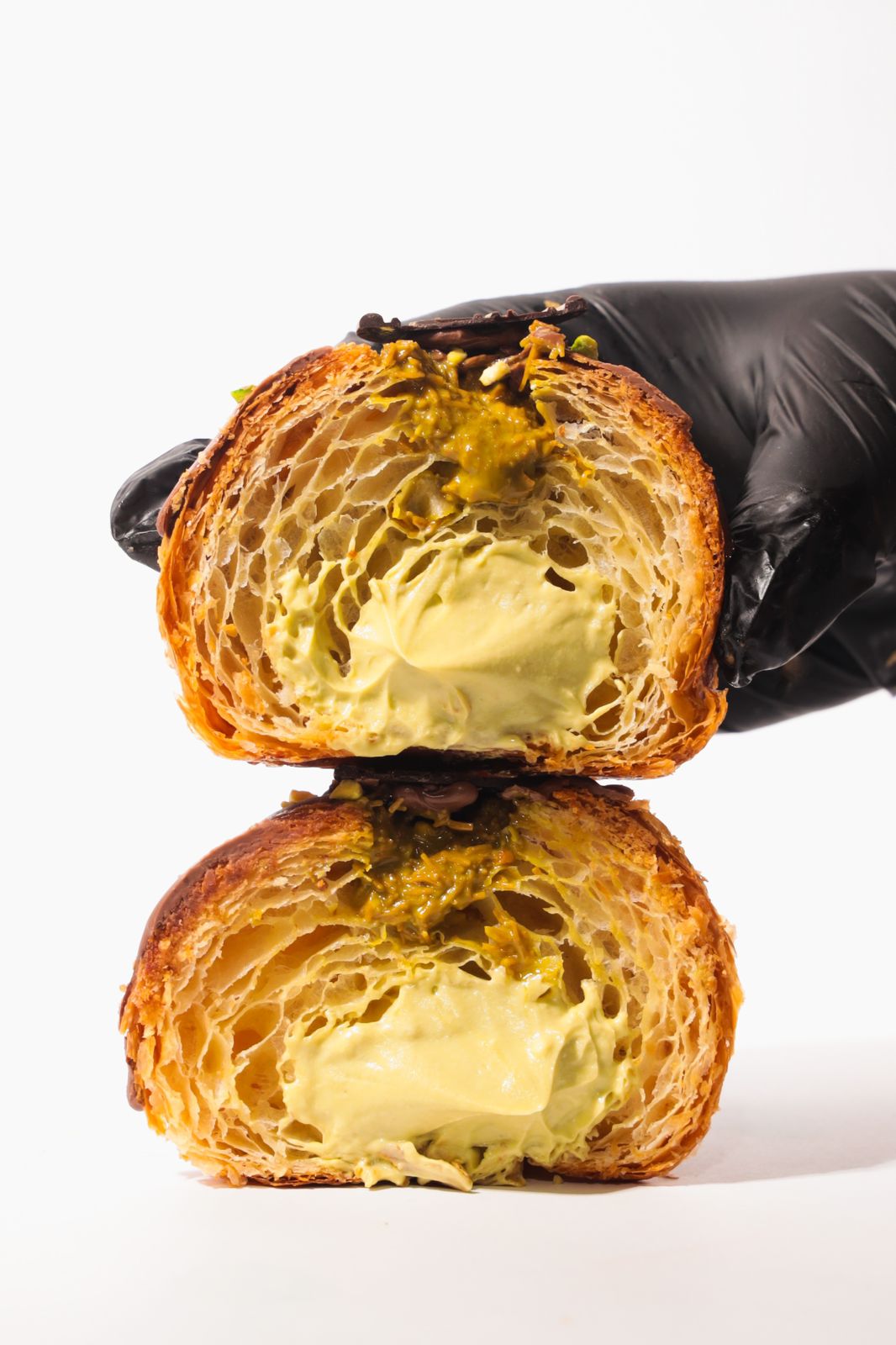 Low and Behold: Dubai Knafeh Croissants! Flaky, nutty, and irresistibly good – the Dubai Knafeh Croissant is made for those who just can’t get enough of the viral knafeh crunch and pistachio puree! This time in between buttery layers of our signature flaky croissant