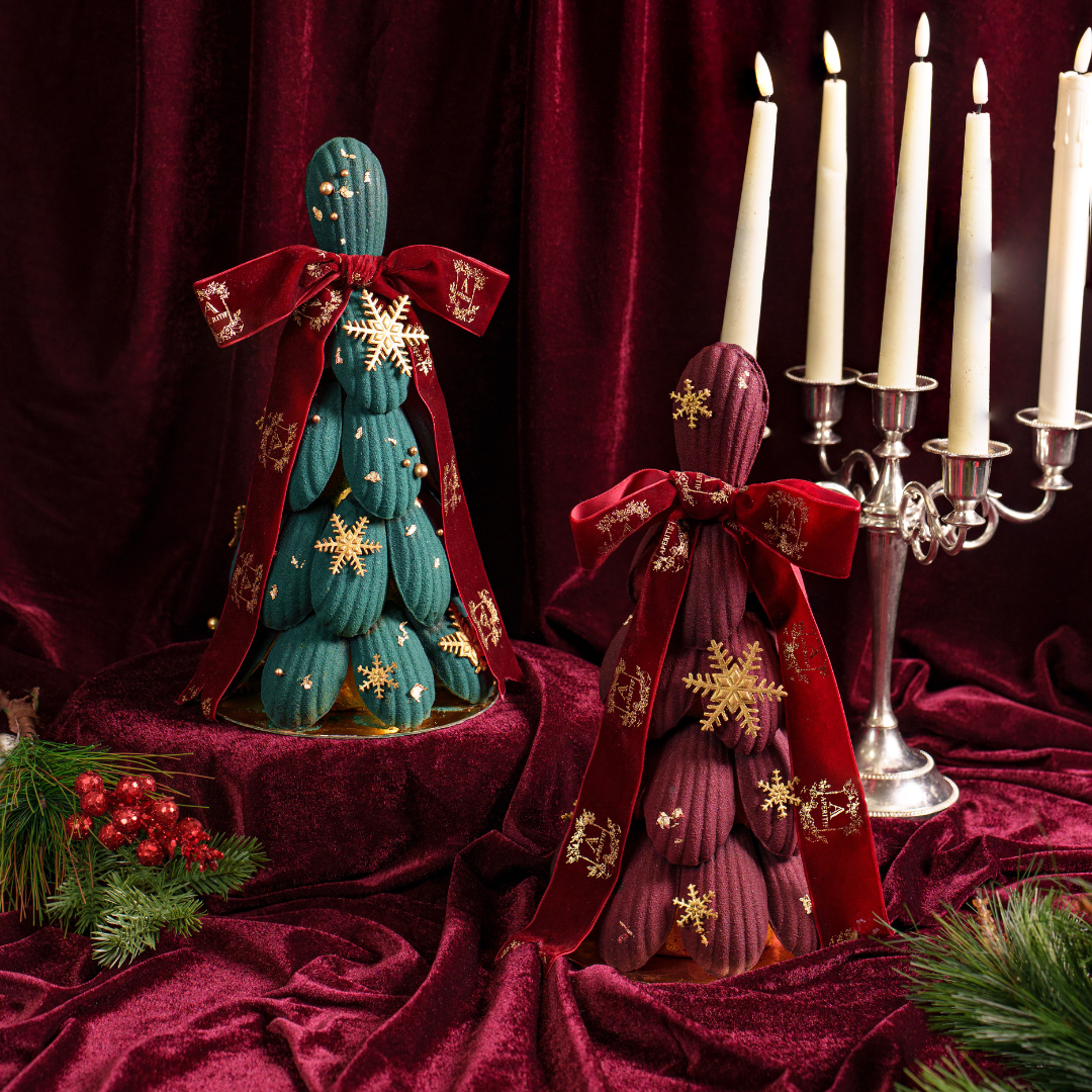 With layers of Madeleine coated with Burgundy or Emerald Green chocolate and golden snowflakes, bringing this to any Holiday get-together will instantly make you everyone’s favorite guest. ✨