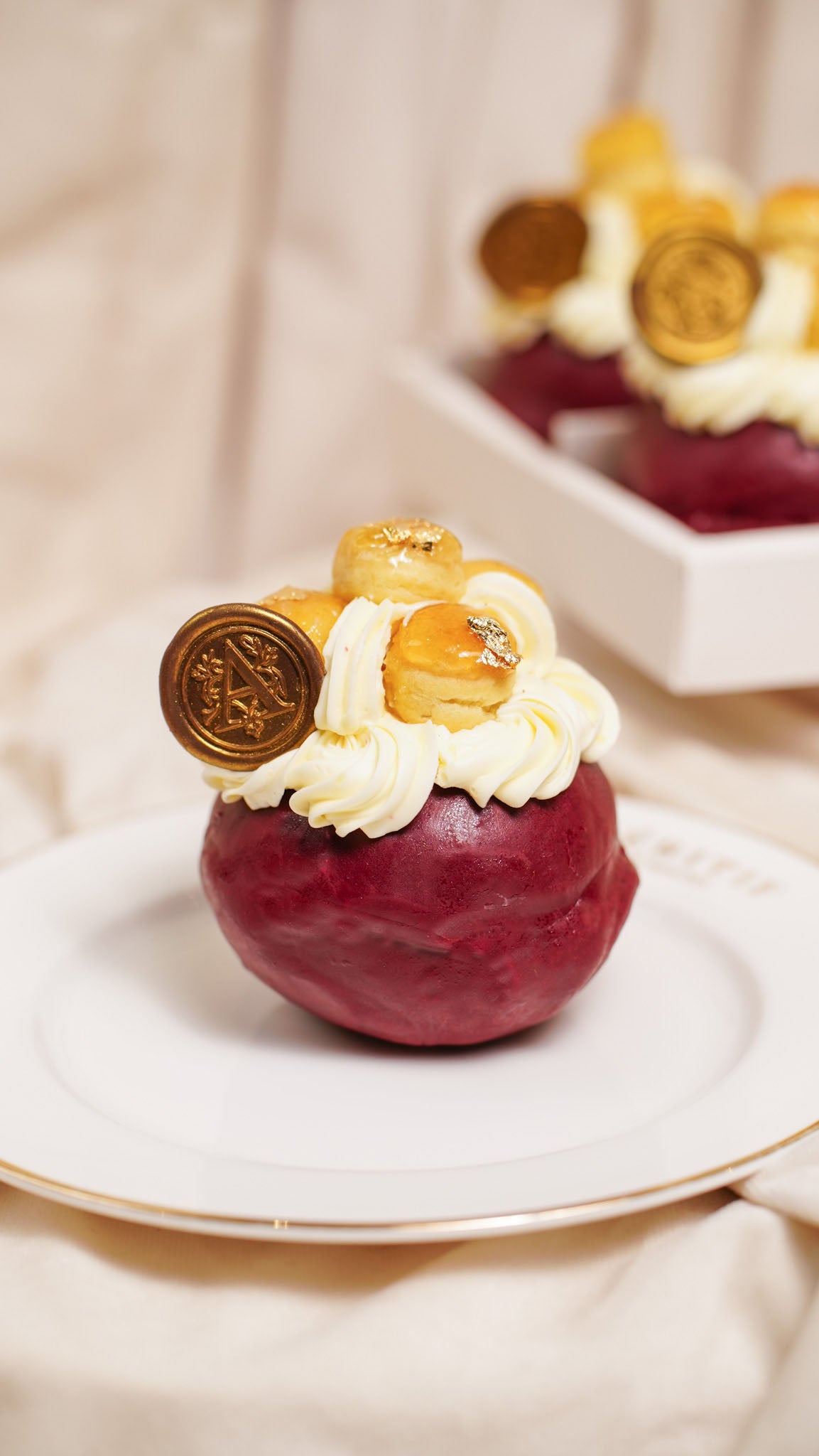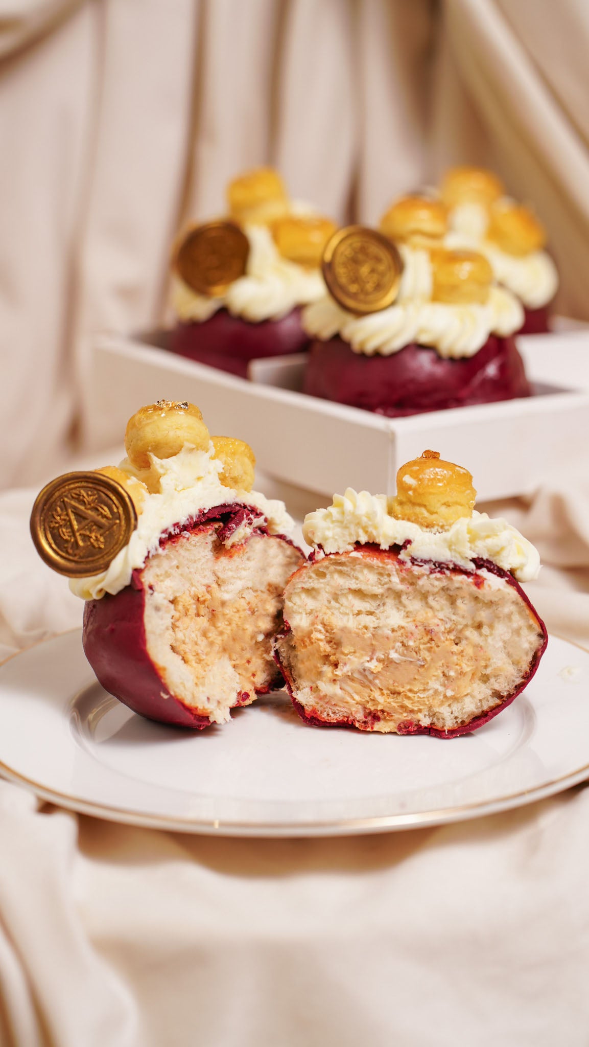 Rich, pillowy, and delightfully romantic. A sweet little fantasy of hazelnut cream, soft dough, and airy clouds of St. Honoré cream puffs. A Valentine’s treat made to be admired before it’s devoured. ✨